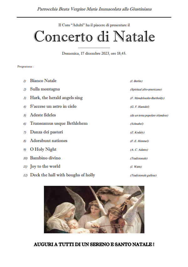 In occasione delle festività natalizie il Coro degli adulti offre alla comunità il consueto concerto per aiutarci ad entrare con la musica tradizionale nel clima del Natale.