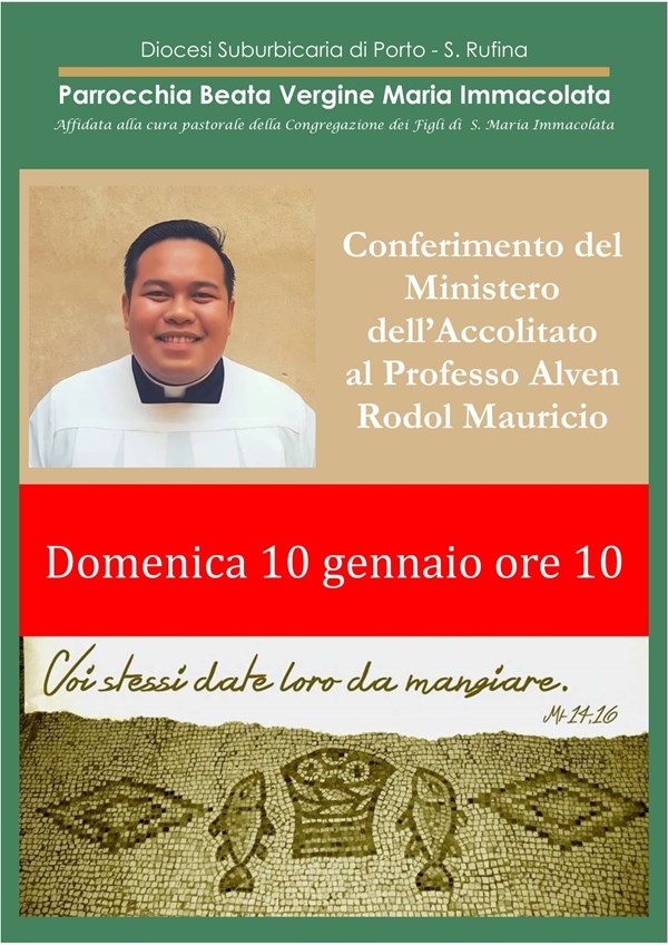 Durante la celebrazione domenicale delle ore 10 sarà conferito il Ministero dell'Accolitato al nostro confratello professo fr. Alven Rodol Mauricio