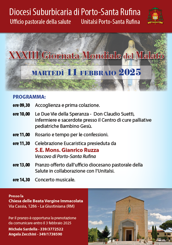 L'11 febbraio 2025 si terrà in parrocchia la giornata diocesana del malato.
