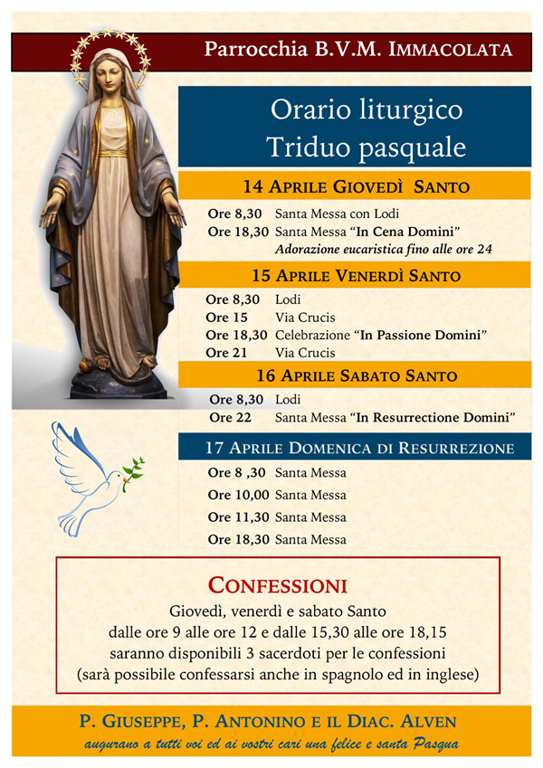 Orario delle celebrazioni della Pasqua