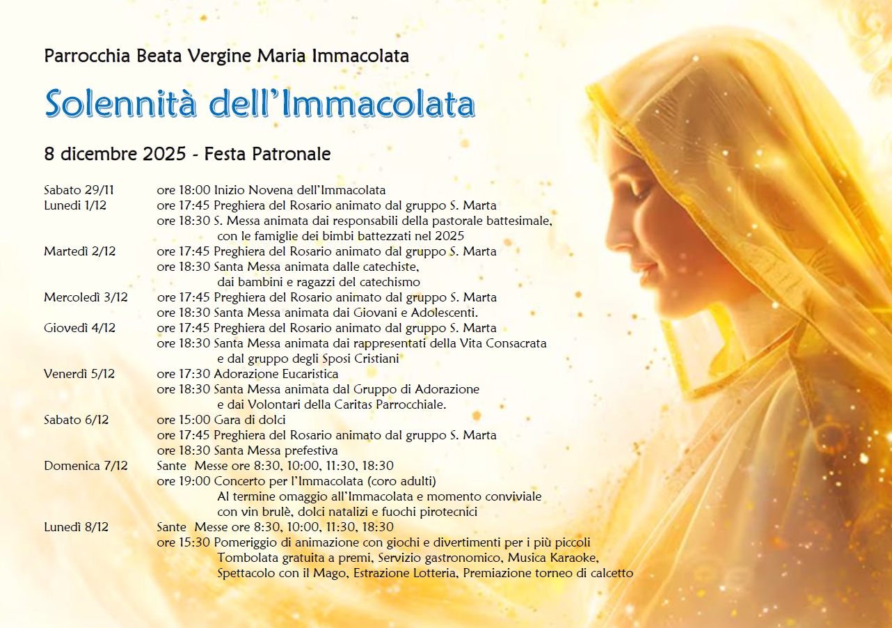 Carissimi parrocchiani, ci ritroviamo anche quest'anno per celebrare insieme la nostra festa patronale dell'Immacolata.